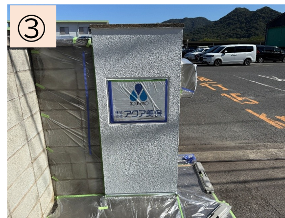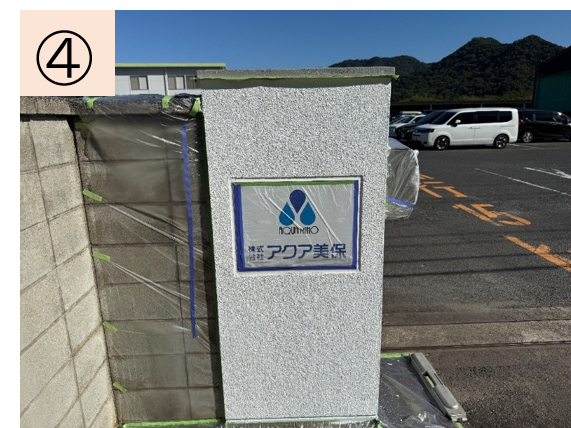 その後、「セメントフィラー」とよばれる下地を塗ります(②)。セメントフィラーは、ひび割れや凹凸を埋める機能があるため、仕上げの塗料との密着性が高まり塗装剥がれを防止することができます🙂